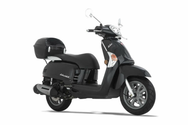 Accesorios de serie: Baúl porta casco con cerradura unificada con llave encendido.